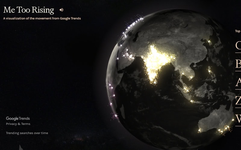 “Few topics have generated as much awareness of sexual assault than the movement, Me Too. What started as a simple statement of empathy from one survivor to another is changing how the world is listening to survivors of sexual violence, assault and harassment. In recognition of Sexual Assault Awareness Month, Google Trends data was used to create a visualization of Google Search interest in “MeToo” over time. This data represents global trends of people searching for the movement from the top 300 searching cities every day,” said Google, in its statement on the project.