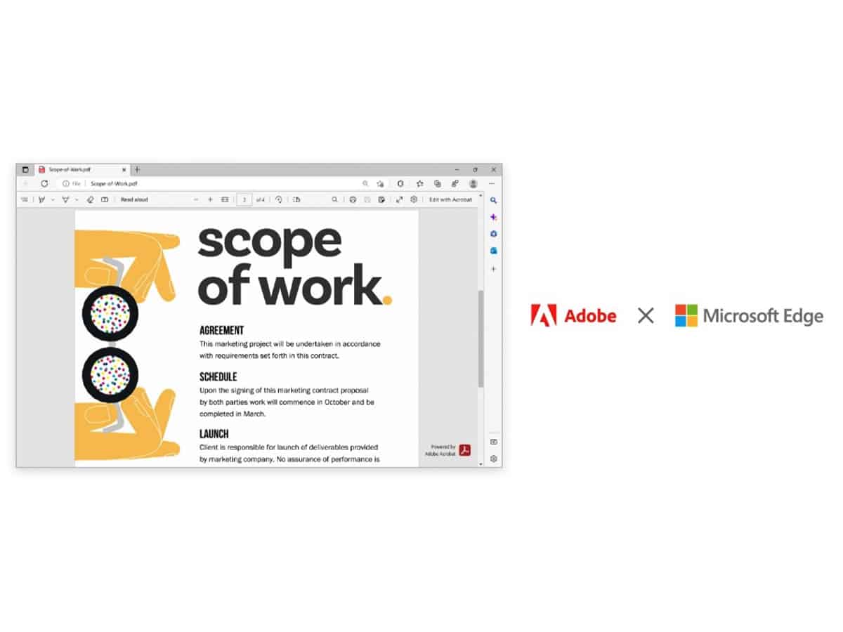 “Adobe’s PDF technology in Microsoft Edge means users will have fast and secure access to critical digital document capabilities,” said Jared Spataro, Corporate Vice President, Modern Work & Business Applications, Microsoft.