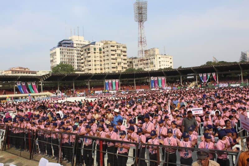 On the eve of the 129th birth Anniversary of Moulana Abdul Kalam Azaad, First Education Minister of India, the Government of Telangana was celebrated the day as “Minority Welfare Day’’ at Fateh Maidan (L B Stadium) on Saturday. Telangana Minorities Residential Educational Institutions Society (TMREIS) was organized a massive programme to mark the said birth Anniversary. Deputy Chief Minister Alhaj Mohammed Mehmood Ali, State Home Minister N Narsihma Reddy, Secudrabad MP Bandaru Dattarya, Advisor to State Government for Minority Welfare A K Khan retired IPS, MLC and Chairmen Waqf Board Telangana State Alhaj Mohammed Saleem, Depyty Mayor Greater Hyderabad Baba Fasiuddin, Chairmen Minority Finance Corporation Telangana State Akber Hussain, Corporator Gunfundry Mamta Gupta, Telangana State Waqf Board Members Abdul Waheed Advocate, Malik Motesim Khan, Professor S A Shakoor, Syed Omer Jaleel IAS and others was participated. (Photo: Zabi)