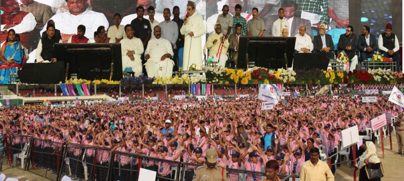 On the eve of the 129th birth Anniverssary of Moulana Abdul Kalam Azaad, First Education Minister of India, the Governement of Telangana was celebrated the day as “Minority Welfare Day’’ at Fateh Maidan (L B Stadium) on Saturday. Telangana Minorities Residential Educational Instituons Soceity (TMREIS) was oragnized a massive programme to mark the said birth Anniverssary. Depty Chief Minister Alhaj Mohammed Mehmood Ali, State Home Minister N Narsihma Reddy, Secudrabad MP Bandaru Dattarya, Advisor to State Government for Minority Welfare A K Khan retired IPS, MLC and Chairmen Waqf Board Telangana State Alhaj Mohammed Saleem, Depyty Mayor Greater Hyderabad Baba Fasiuddin, Chairmen Minority Finance Corporation Telangana State Akber Hussain, Corporator Gunfundry Mamta Gupta, Telangana State Waqf Board Members Abdul Waheed Adovcate, Malik Motesim Khan, Professor S A Shakoor, Syed Omer Jaleel IAS and others was particiapted. (Photo: Zabi)