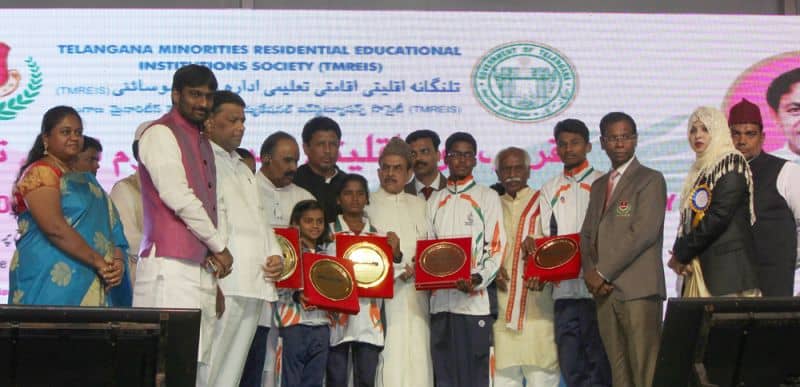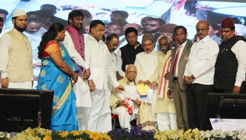 On the eve of the 129th birth Anniverssary of Moulana Abdul Kalam Azaad, First Education Minister of India, the Governement of Telangana was celebrated the day as “Minority Welfare Day’’ at Fateh Maidan (L B Stadium) on Saturday. Telangana Minorities Residential Educational Instituons Soceity (TMREIS) was oragnized a massive programme to mark the said birth Anniverssary. Depty Chief Minister Alhaj Mohammed Mehmood Ali, State Home Minister N Narsihma Reddy, Secudrabad MP Bandaru Dattarya, Advisor to State Government for Minority Welfare A K Khan retired IPS, MLC and Chairmen Waqf Board Telangana State Alhaj Mohammed Saleem, Depyty Mayor Greater Hyderabad Baba Fasiuddin, Chairmen Minority Finance Corporation Telangana State Akber Hussain, Corporator Gunfundry Mamta Gupta, Telangana State Waqf Board Members Abdul Waheed Adovcate, Malik Motesim Khan, Professor S A Shakoor, Syed Omer Jaleel IAS and others was particiapted. (Photo: Zabi)On the eve of the 129th birth Anniverssary of Moulana Abdul Kalam Azaad, First Education Minister of India, the Governement of Telangana was celebrated the day as “Minority Welfare Day’’ at Fateh Maidan (L B Stadium) on Saturday. Telangana Minorities Residential Educational Instituons Soceity (TMREIS) was oragnized a massive programme to mark the said birth Anniverssary. Depty Chief Minister Alhaj Mohammed Mehmood Ali, State Home Minister N Narsihma Reddy, Secudrabad MP Bandaru Dattarya, Advisor to State Government for Minority Welfare A K Khan retired IPS, MLC and Chairmen Waqf Board Telangana State Alhaj Mohammed Saleem, Depyty Mayor Greater Hyderabad Baba Fasiuddin, Chairmen Minority Finance Corporation Telangana State Akber Hussain, Corporator Gunfundry Mamta Gupta, Telangana State Waqf Board Members Abdul Waheed Adovcate, Malik Motesim Khan, Professor S A Shakoor, Syed Omer Jaleel IAS and others was particiapted. (Photo: Zabi)