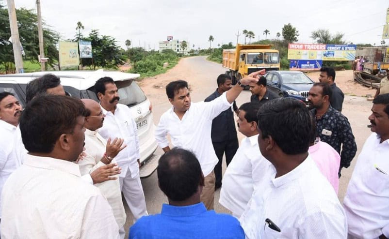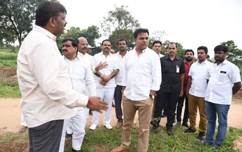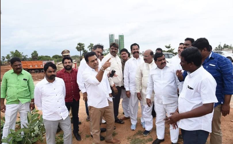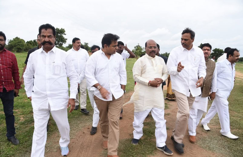 State Minister KTR, along with other minister like Patnam Mahendar Reddy, MLAs Manchi Reddy Kishan Reddy, Tegala Krishna Reddy and others, visited Pragathi Nivedana Sabha meeting place Kongarakalan on Sunday afternoon. (Photo: Zabi)