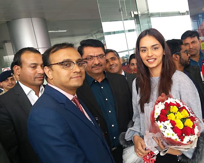 Hyderabad : The crown jewel and pride of India – the Miss World 2017 Manushi Chhillar received a thumping welcome at GMR led Hyderabad International Airport today. Ms. Chhillar arrived by Air India 542 flight from Delhi at around 12.20 pm.