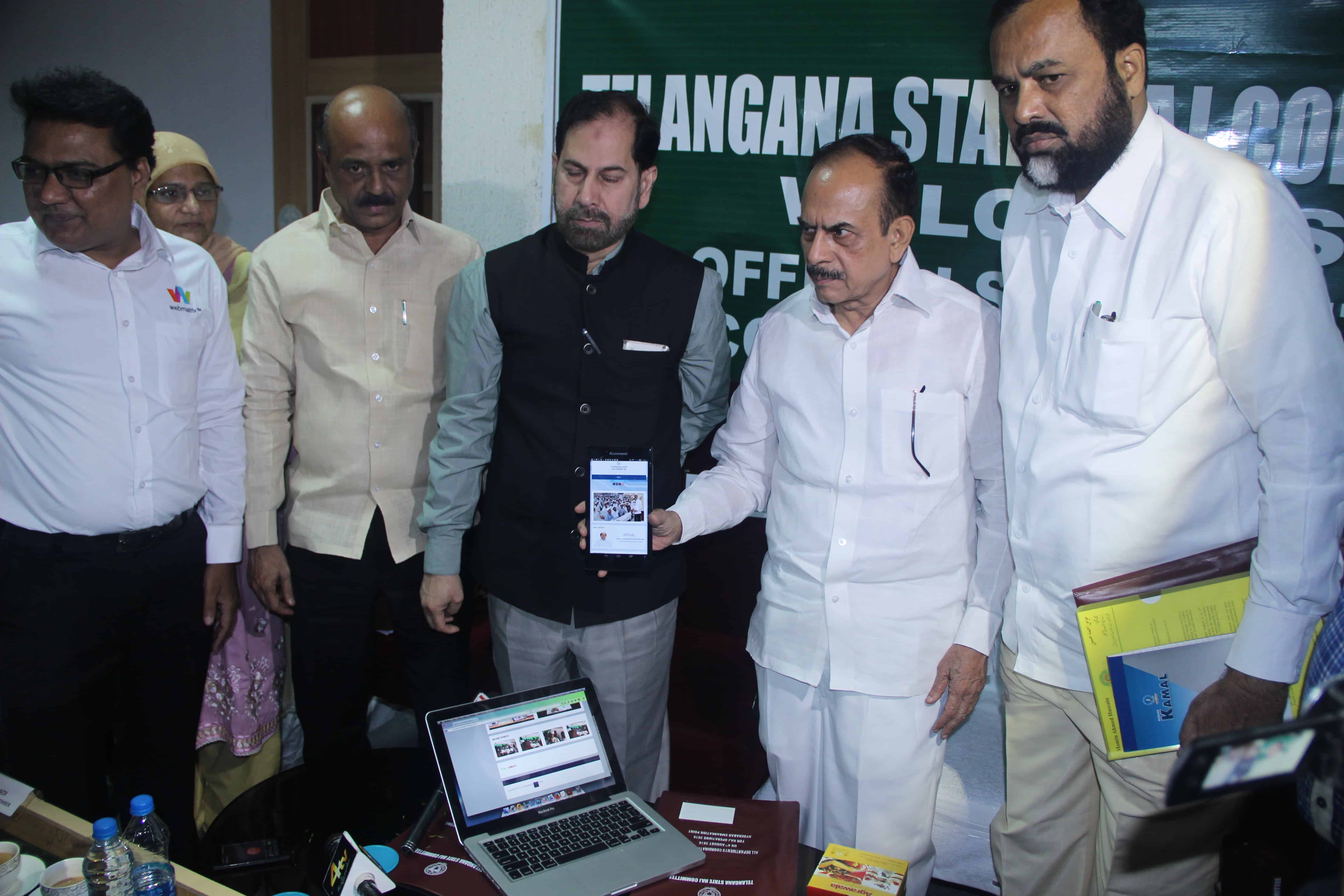 Janab Mohd. Mahmood Ali, Deputy CM Telangana, inaugurated mobile app and website for the convenience of the pilgrims for the Hajj-2016 at Hajj House. Photo:Laeeq