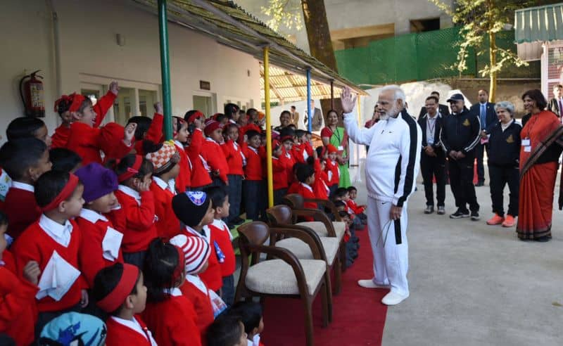 Prime Minister Narendra Modi interacting with children at Balwadi, at the Lal Bahadur Shastri National Academy of Administration (LBSNAA), in Mussoorie on Friday. UNI