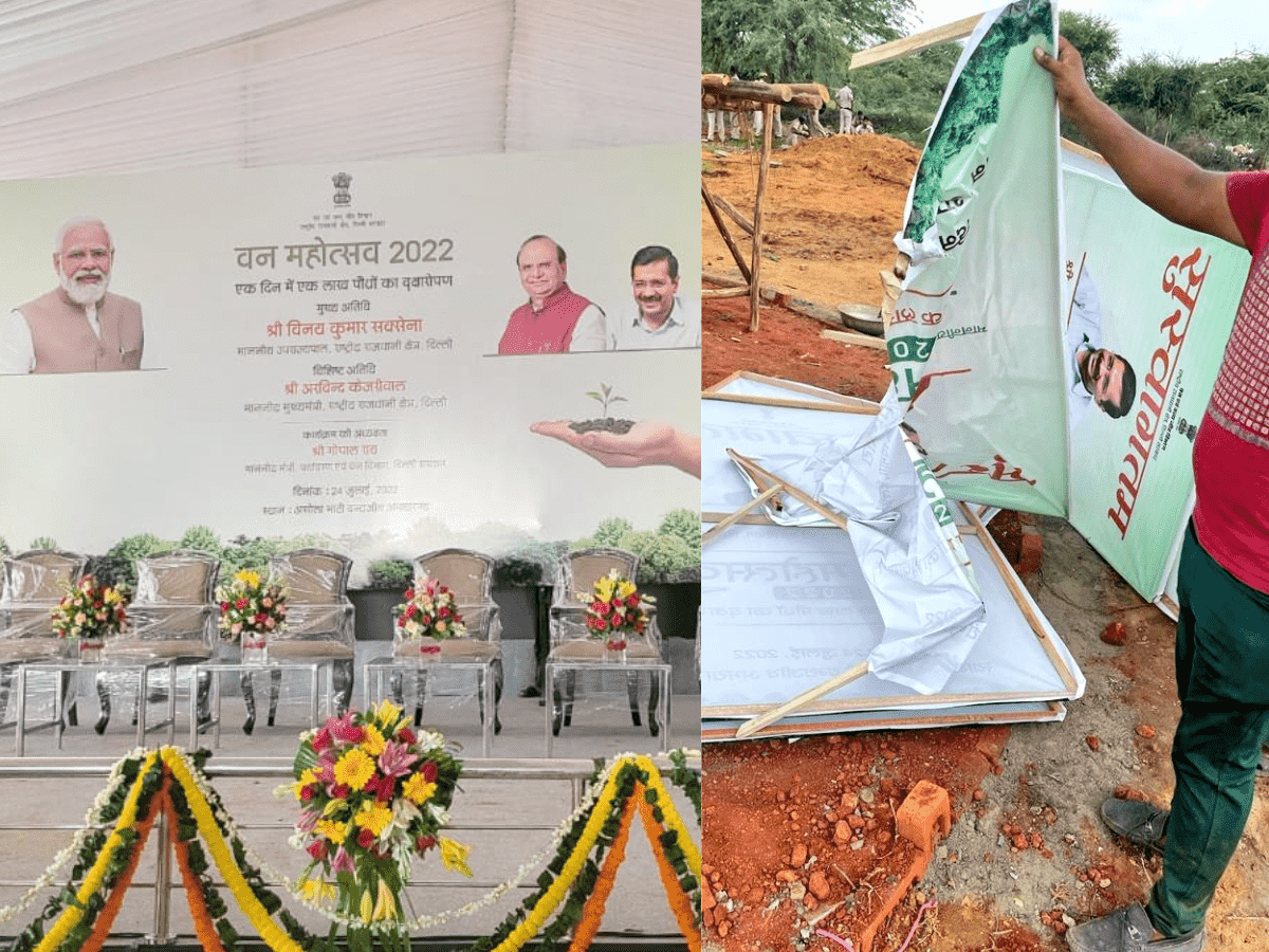 “The Delhi Police reached the location of the event and took control of the pandal last night. They forcibly put up banners carrying pictures of PM Modi … Banners carrying photos of Lieutenant Governor (VK Saxena) and Chief Minister Kejriwal were taken down,” Rai alleged at a press conference.