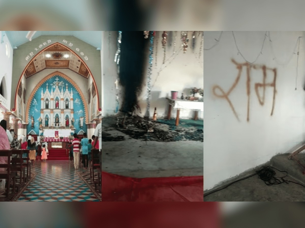 When some people went to the church on Sunday to offer prayers, they found it burnt and its inside wall having the word “Ram” inscribed on it, local devotee Denis Jonathan claimed while talking to PTI.