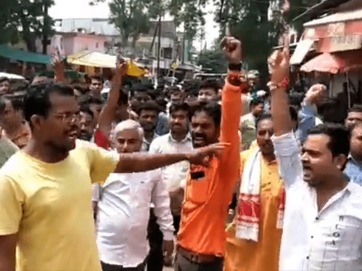 Dewas: Members of the Bajrang Dal raised slogans on Saturday against a Muslim family whose 20-year-old son allegedly eloped with a 19-year-old Dalit woman in a village in Dewas district, Madhya Pradesh.