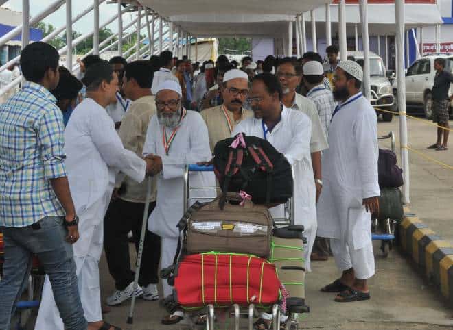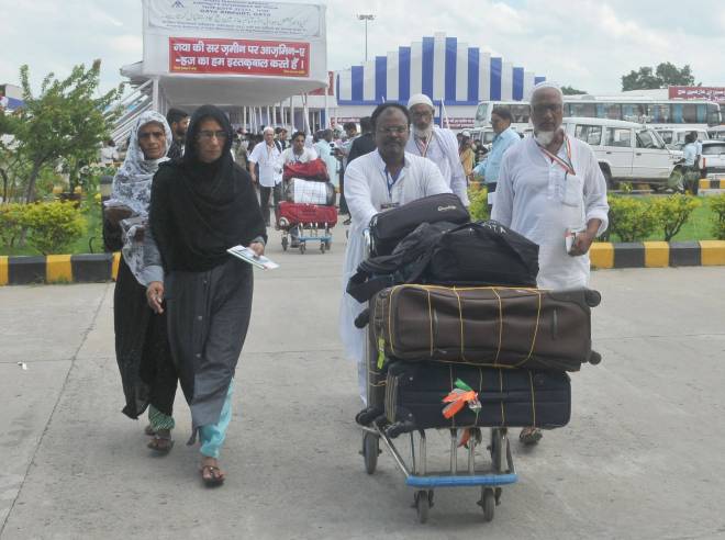 Mukhtar Abbas Naqvi and Manish Sisodia greeting Haj Pilgrims August 5, 2016 by arshad Minister of State for Minority Affairs (I/C) and Parliamentary Affairs Mukhtar Abbas Naqvi and Delhi Deputy Chief Minister Manish Sisodia greeting Haj Pilgrims during the flagging-off of the first flight, in New Delhi on Wednesday night. UNI PHOTO