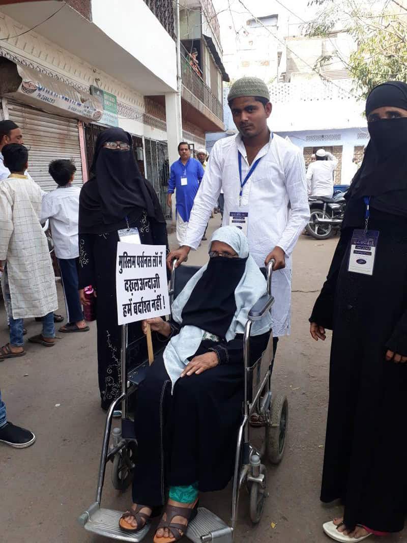 This was one of the biggest gatherings staged by Muslim women in the country to raise their voice against the Triple Talaq Bill. The rally began at 10:00 a.m. from Char Darwaza, winding their way via Ghat Gate, Nawab Ka Chauraha, Moti Dogri Road they finally converged into a meeting point at the Muslim Musafir Khana.