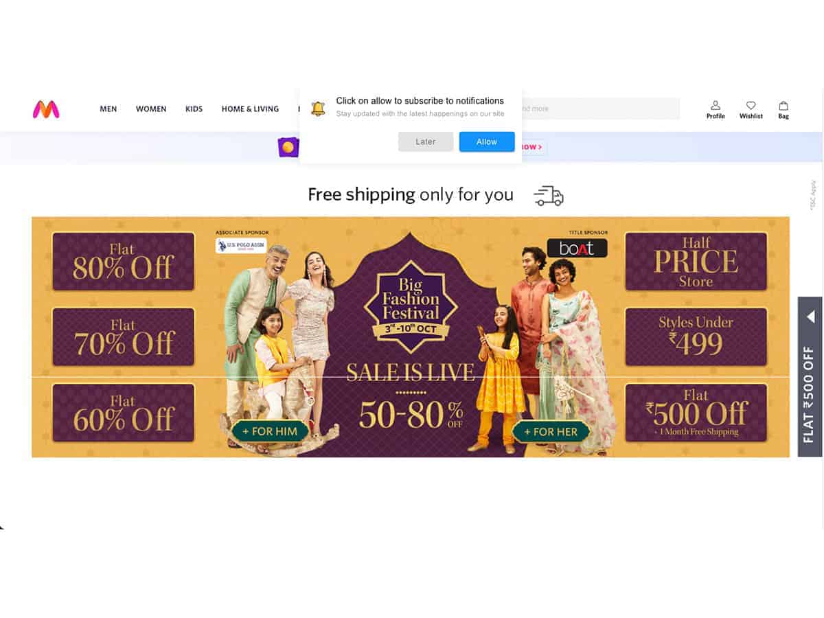 Bengaluru: The biggest-ever edition of Myntras Big Fashion Festival (BFF) has got off to an incredible start, with the ongoing event recording purchase of nearly 6 lakh items in the first hour.