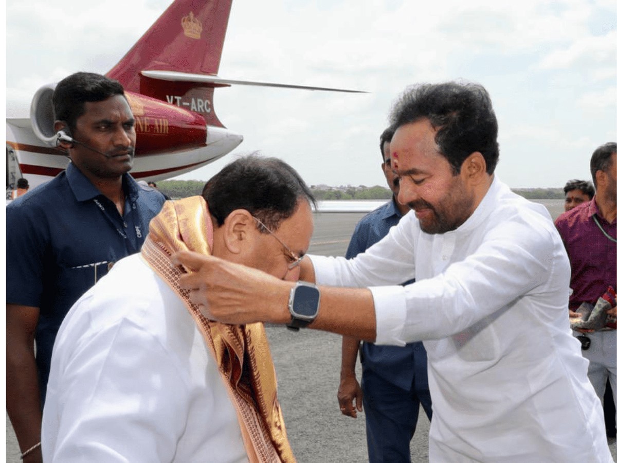 Earlier, Union minister for tourism and culture G. Kishan Reddy, who was last week named as the BJP president for Telangana, received J. P. Nadda at Begumpet Airport. Former state BJP president Bandi Sanjay, MP K. Laxman, MLA Eatala Rajender and other leaders were also present.