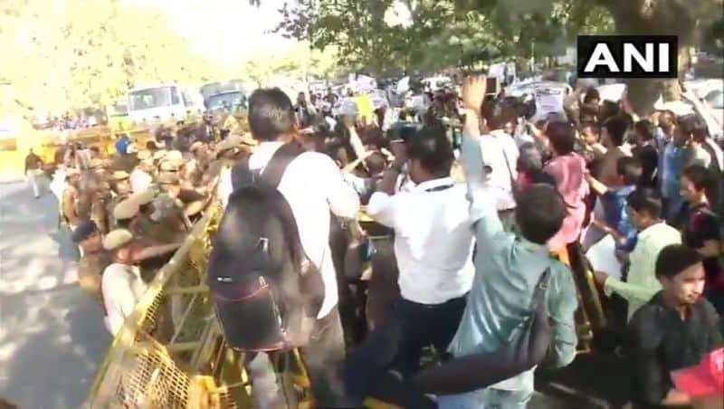 About 250 students, including those from Aligarh Muslim University (AMU), clashed with the security forces deployed there to prevent any trespassing during the demonstration.