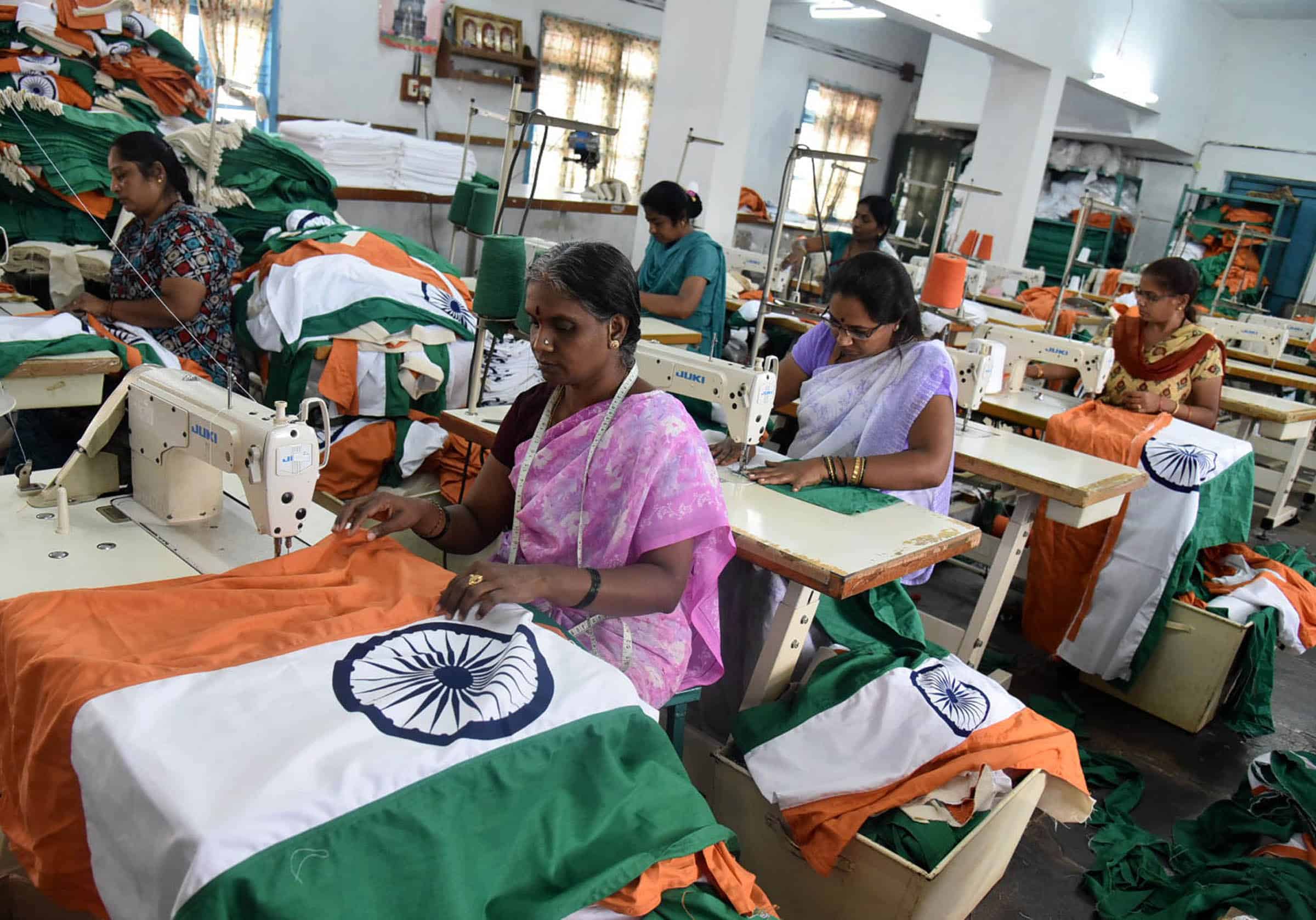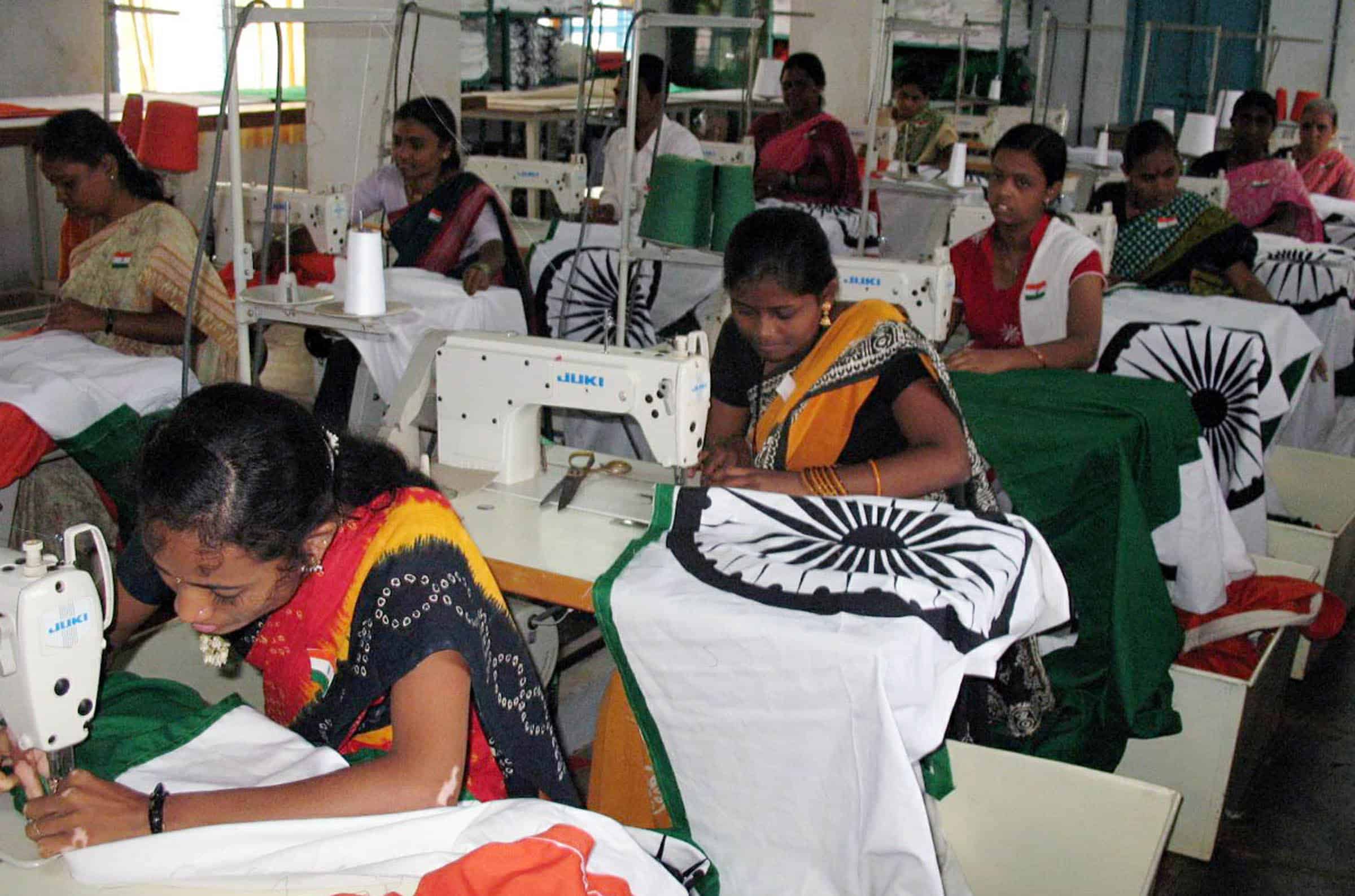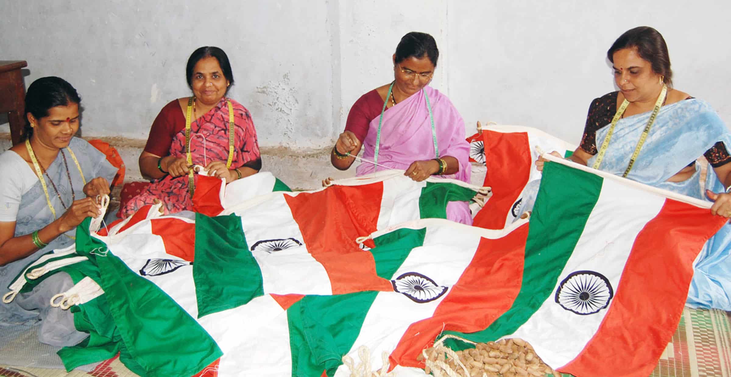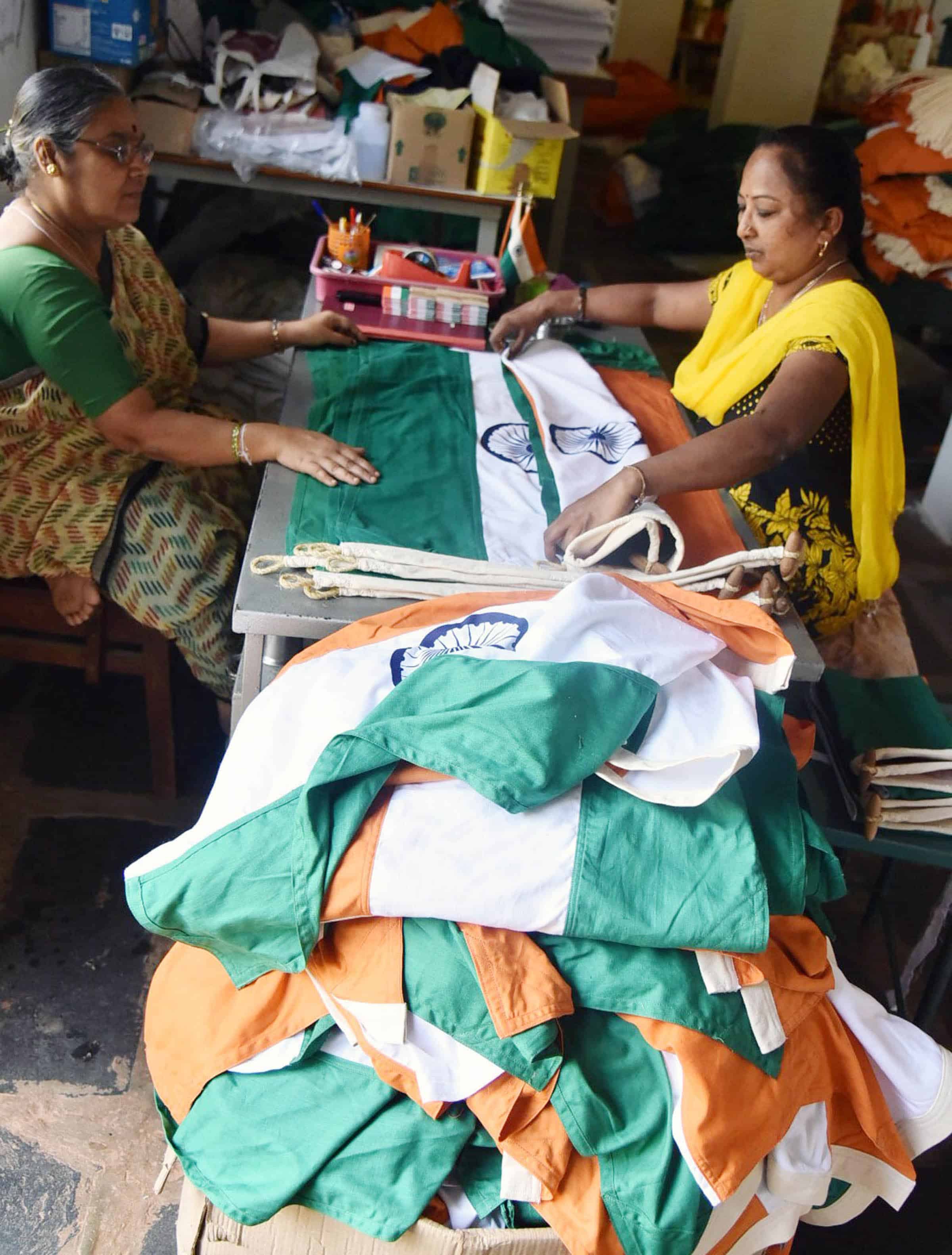 HUBBALLI, AUG 12 (UNI):- Workers of Karnataka Khadi and Gramodyog Samyukta Sanga (KKGSS) making ‘National Flags, at Bengeri in Hubballi on Friday. UNI PHOTO-19U