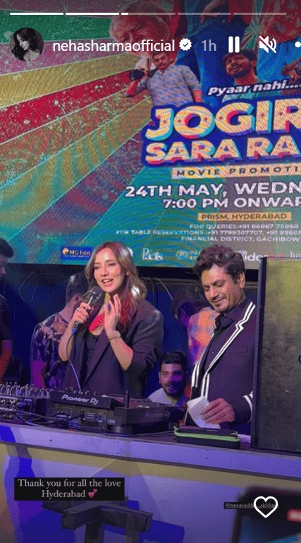 Hyderabad: Hyderabadis were buzzing with excitement on Wednesday night as acclaimed actor Nawazuddin Siddiqui and talented actress Neha Sharma made a grand appearance at Prism Club in Gachibowli to promote their highly anticipated movie, “Jogira Sara Ra Ra.” The star-studded event left fans in awe and sent social media into a frenzy.