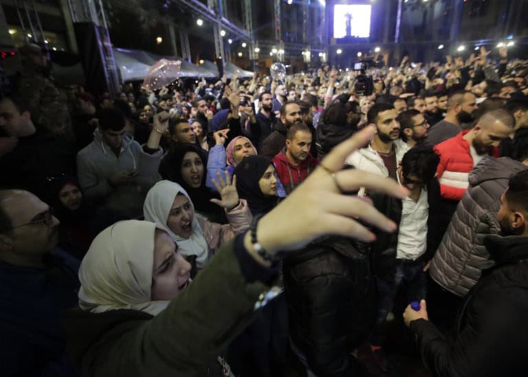 Lebanese women dance during a New Year’s celebration in downtown Beirut, Lebanon, Monday, January 1, 2018. (Photo by Anwar AMRO / AFP)