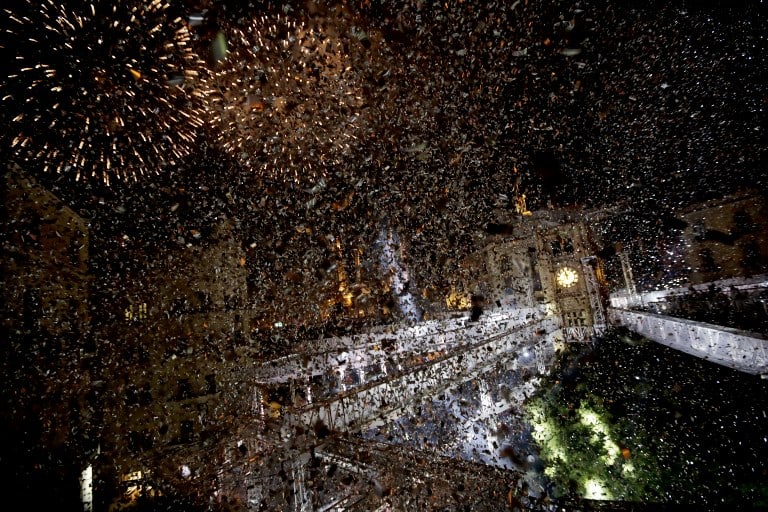 Fireworks explode over downtown Beirut, Lebanon, during New Year’s celebrations on January 1, 2019. (Photo by Anwar AMRO / AFP)