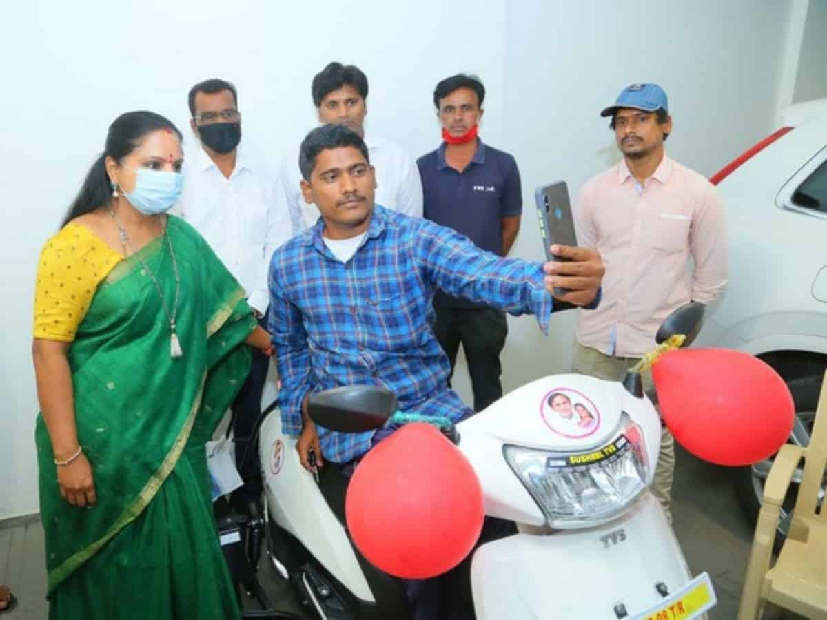 Hyderabad: Member of Legislative Council (MLC) and former MP from Nizamabad, Kalvakuntla Kavitha gifted a scooter to a specially-abled man on Monday.
