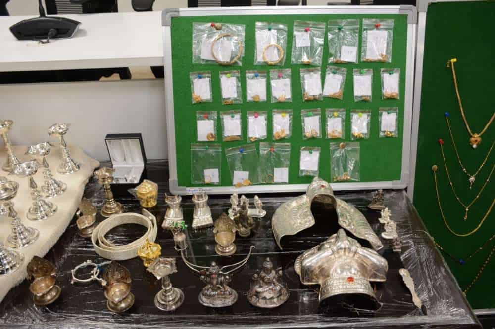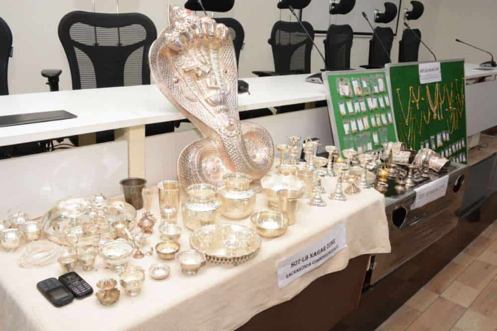 Cops also seized 680 grams of gold jewelry, 9 ½ of silver articles, and net cash around Rs. 10,500, one Yamaha FZ bike and two mobile phones including housebreaking tools from their possession. The total value of recovered articles is Rs.28, 12,900 lakh.