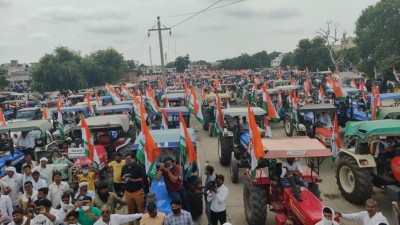 Bhubaneswar, Nov 9 : The Odisha unit of Congress on Monday organised a mega tractor rally protesting against the new farm laws enacted by the Centre.