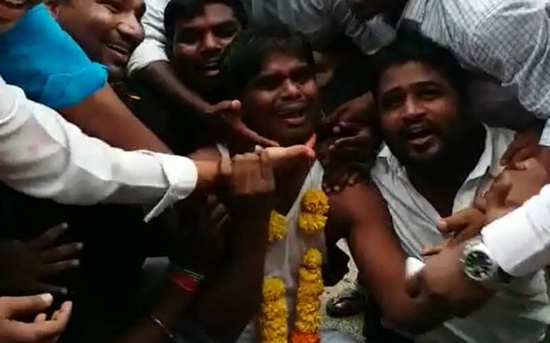 Carrying the effigy of the CM on their shoulders, the protesting students in the video can be heard raising slogans like ‘Abhi Abhi Kya Khua KCR Marr Gaya’.