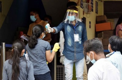 Before allowing entry into the examination hall on Tuesday, the temperature of the examinees was checked.
