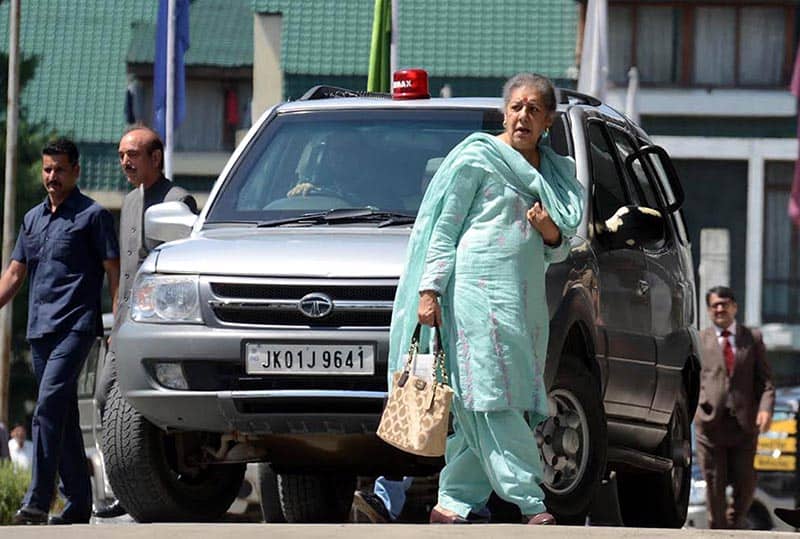 SRINAGAR, SEP 4 (UNI):- Senior Congress leader Ambika Soni while arriving at SKICC in Srinagar on Sunday, as the party of the All Party Delegation to hold talks with leaders of different political parties and other organizations besides individuals during their two day stay in the Jammu and Kashmir. UNI PHOTO-34U