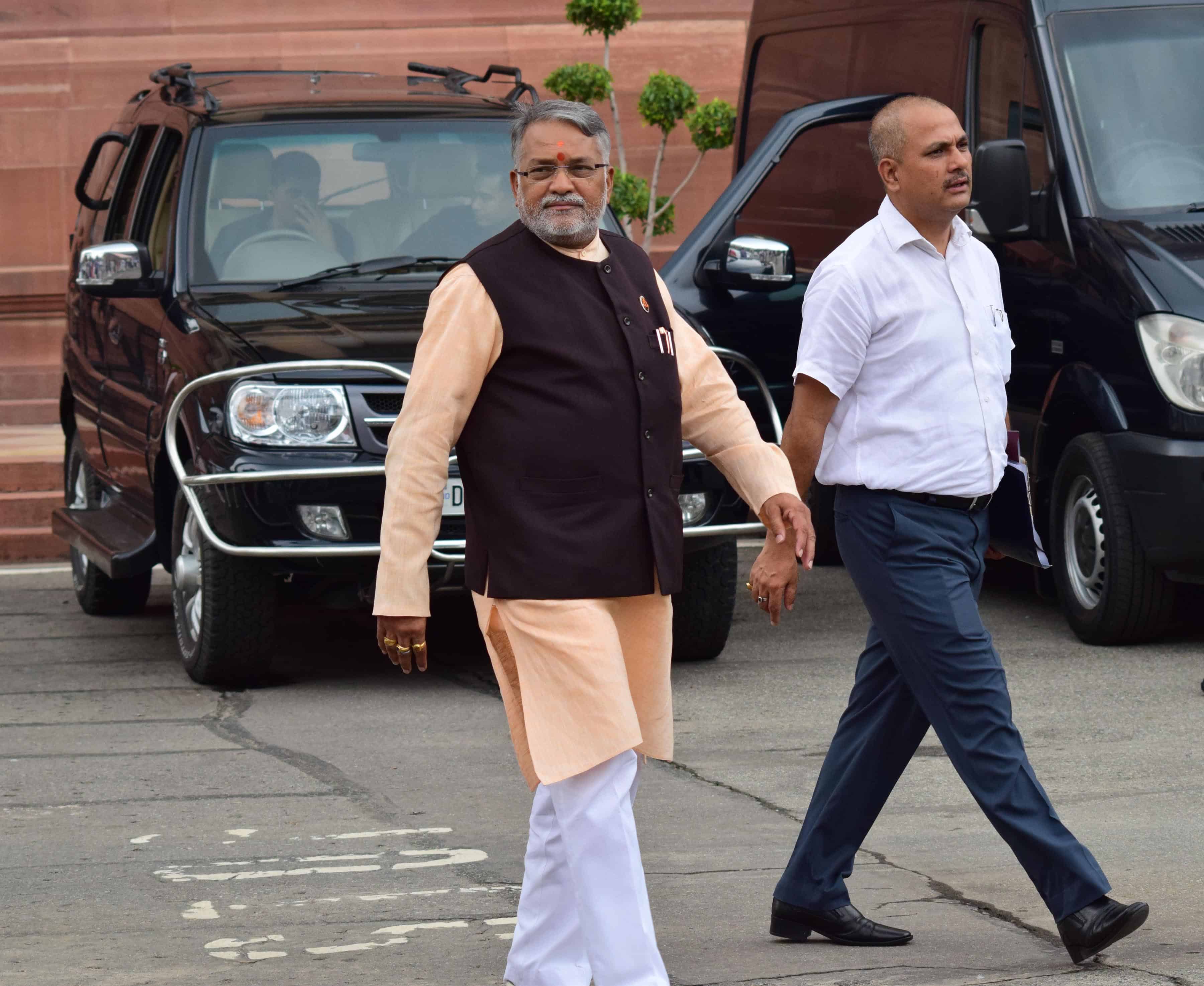 NEW DELHI, AUG 12 (UNI):-Trinamool Congress leader Sudip Bandopadhaya on his way to attend the All Party meeting convened by Prime Minister Narendra Modi on Kashmir issue in New Delhi on Friday. UNI PHOTO-80u