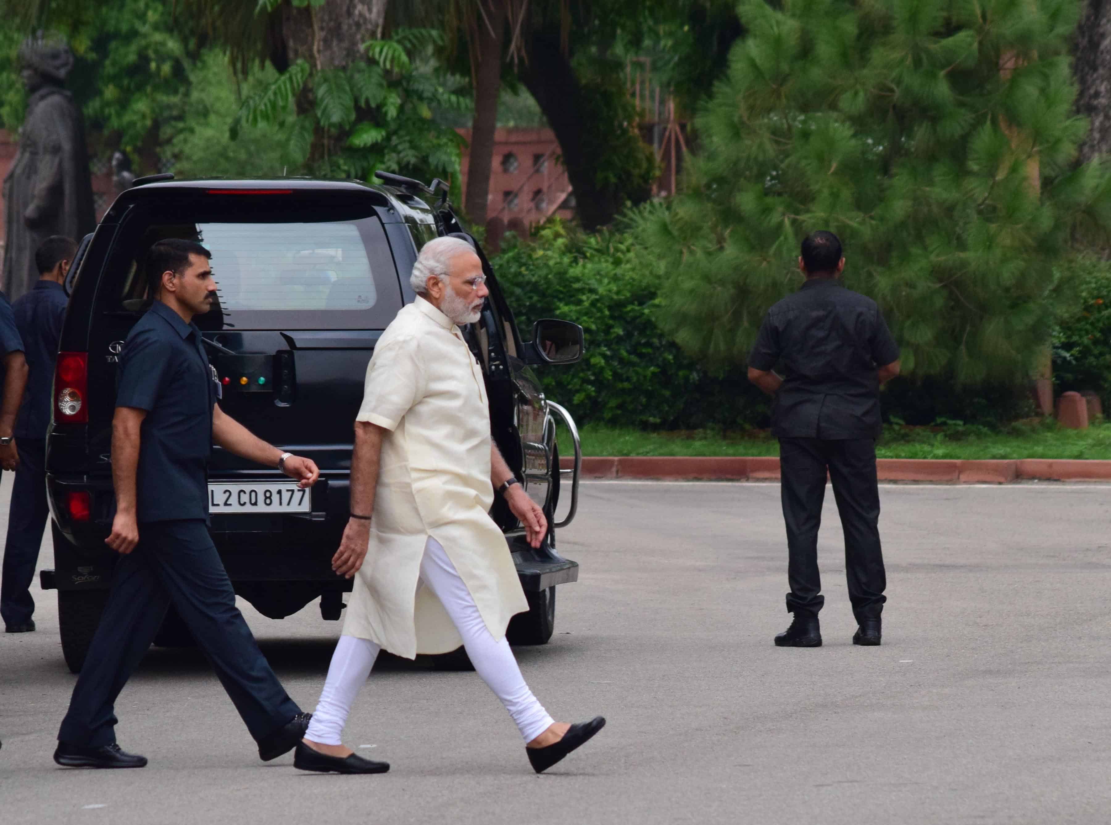 NEW DELHI, AUG 12 (UNI):-Prime Minister Narendra Modi on his way to attend the All Party meeting convened by him on Kashmir issue in New Delhi on Friday. UNI PHOTO-94u