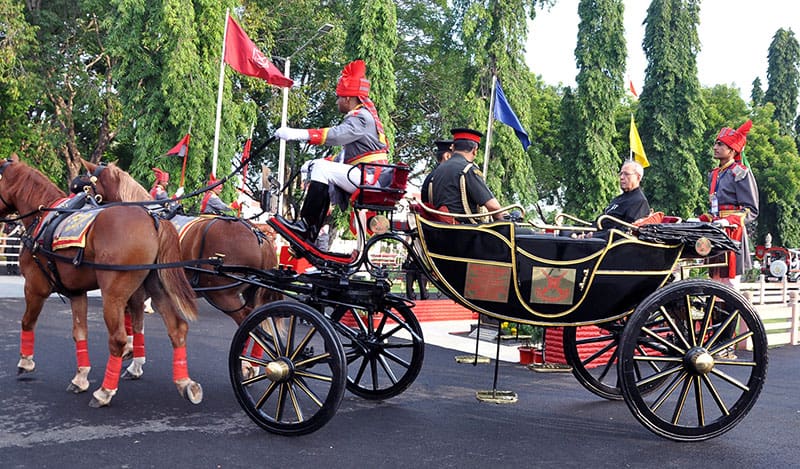 CHENNAI, SEP 10 (UNI):- President Pranab Mukherjee arriving in a traditional way at Parameswaran Parade Ground to review the Passing Out Parade at Officers Training Academy (OTA), in Chennai on Saturday. UNI PHOTO-53U