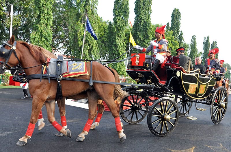 CHENNAI, SEP 10 (UNI):- President Pranab Mukherjee arriving in a traditional way at Parameswaran Parade Ground to review the Passing Out Parade at Officers Training Academy (OTA), in Chennai on Saturday. UNI PHOTO-52U