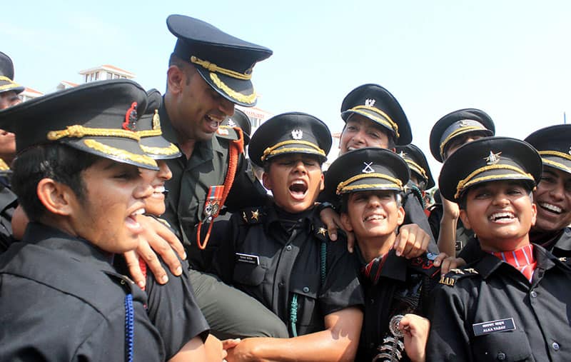 CHENNAI, SEP 10 (UNI):- A jubilant newly commissioned officers after the Passing Out Parade at Officers Training Academy (OTA), in Chennai on Saturday. UNI PHOTO-57U