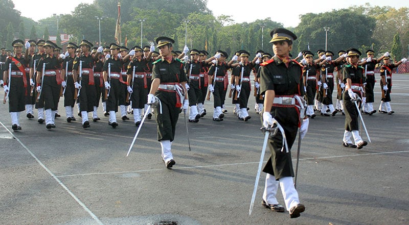 Cadets march past during the Passing Out Parade at Officers Training Academy (OTA), in Chennai on Saturday. UNI PHOTO