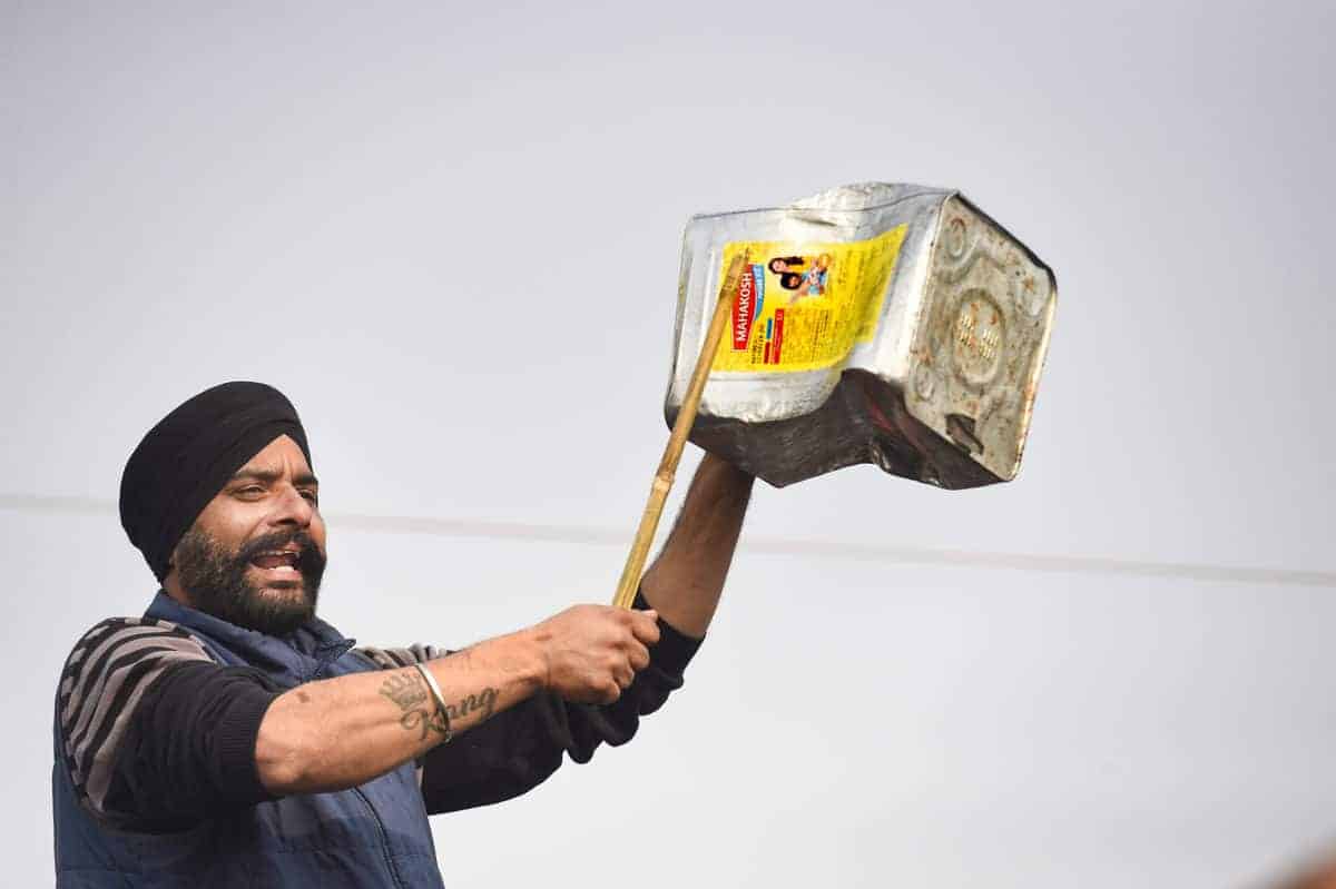 New Delhi: Farmers beat utensils and cans at a protest against PM Modi’s Man ki Baat programme, during their ongoing agitation over new farm laws, at Ghazipur border in New Delhi, Sunday, Dec. 27, 2020. (PTI Photo/Atul Yadav)