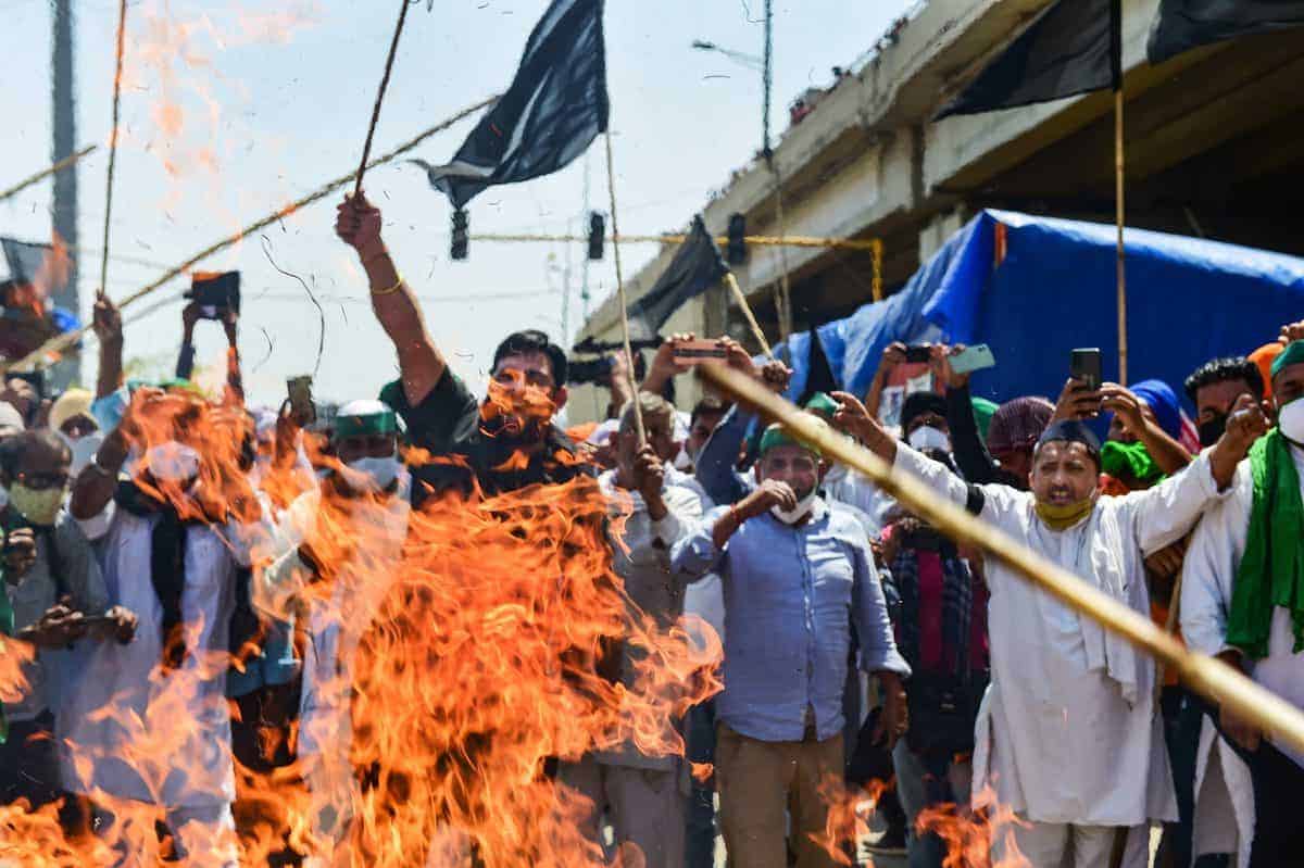 New Delhi: BKU leader Rakesh Tikait, with supporters and farmers, protests with black flags against farm laws, at Ghazipur border in New Delhi, Wednesday, May 26, 2021. (PTI Photo/Kamal Kishore)Patiala: Farmers protest with black flags against farm laws in Patiala, Wednesday, May 26, 2021. (PTI Photo)New Delhi: Farmers and supporters protest with black flags against farm laws marking a Black Day, at Singhu border in New Delhi, Wednesday, May 26, 2021. (PTI Photo/Shahbaz Khan)New Delhi: Farmers burn an effigy during a protest against farm laws marking a Black Day, at Singhu border in New Delhi, Wednesday, May 26, 2021. (PTI Photo)New Delhi: Farmers wearing black badges shout slogans during a protest against the farm laws marking a Black Day, at Ghazipur border in New Delhi, Wednesday, May 26, 2021. (PTI Photo/Kamal Kishore)New Delhi: BKU leader Rakesh Tikait and other members hold hands during a protest against the farm laws marking a Black Day, at Ghazipur border in New Delhi, Wednesday, May 26, 2021. (PTI Photo/Kamal Kishore)Amritsar: Farmers hold black flags during a protest against farm laws marking a ‘Black Day’, in Amritsar, Wednesday, May 26, 2021. (PTI Photo)New Delhi: Farmers burn an effigy during protest protest with black flags against farm laws marking a Black Day, at Singhu border in New Delhi, Wednesday, May 26, 2021. (PTI Photo/Shahbaz Khan)
