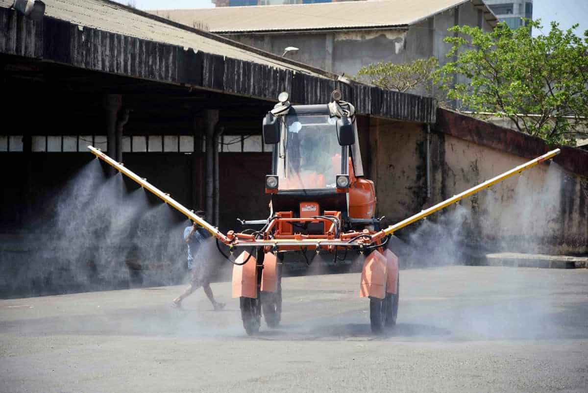 Navi Mumbai: Corporation workers carry out sanitization of APMC Market amid ongoing COVID-19 lockdown in Navi Mumbai, Tuesday, May 12, 2020. APMC markets are closed in the view of rise in the number of COVID-19 cases. (PTI Photo)