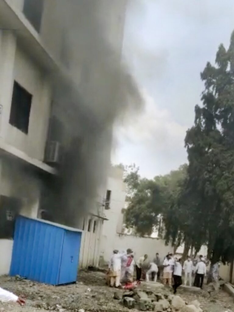 Ahmednagar: Smoke rises after a fire broke out at the ICU of Civil Hospital in Ahmednagar, Saturday, Nov. 6, 2021. At least 10 people died in the fire. (PTI Photo)