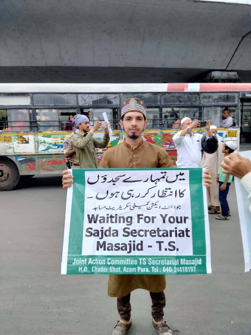 Hyderabad: Demanding immediate re-construction of demolished Mosques at Telangana Secretariat, the members of the Joint Action Committee on Friday staged a flash protest across the city.