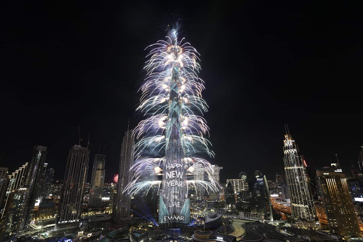 Istanbul: Fireworks explode over the Ottoman-era Mecidiye mosque in Ortakoy square next to ‘July 15th Martyrs’ bridge, known as Bosphorus bridge, during New Year’s Eve celebrations in Istanbul, Turkey, early Saturday, Jan 1, 2022. (AP Photo/Emrah Gurel)