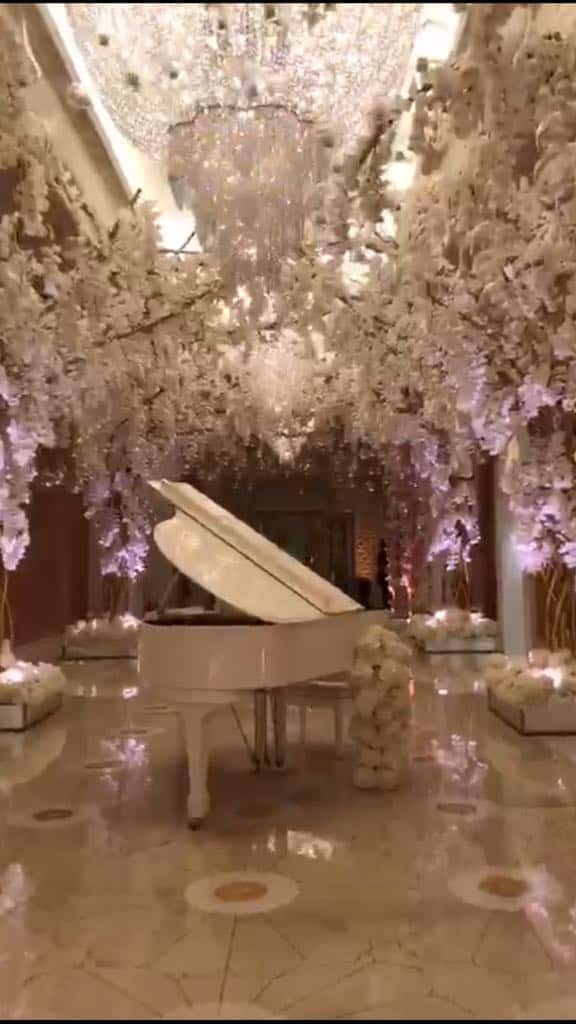 Keeping it classy, the entrance of the Ambani’s house has been majestically decorated with flowers and lights.
