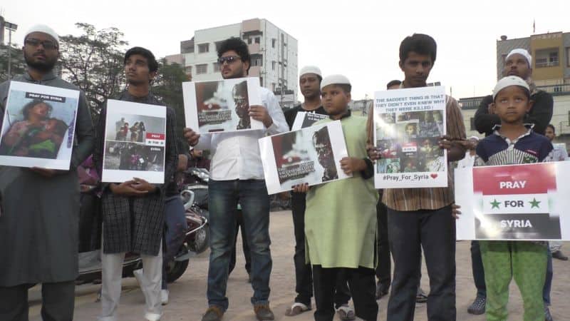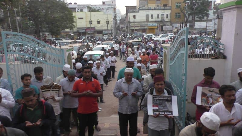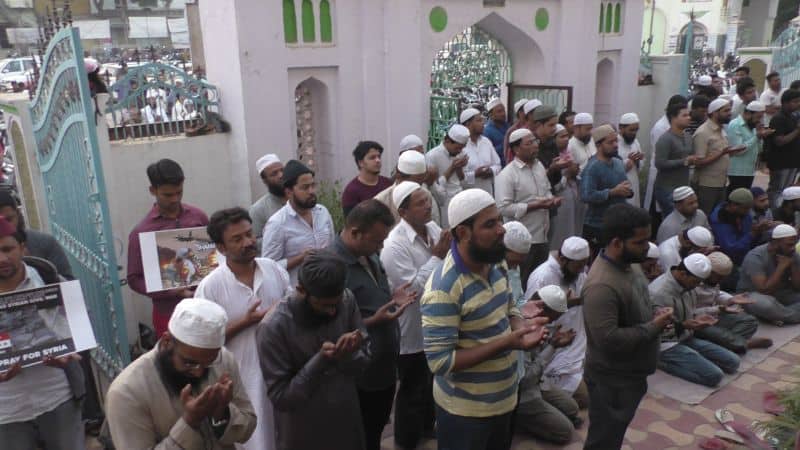 Qunoot-e-Naazilah (Special Du’aa) offered at Jama Masjid Darushifa in Fajr prayer led by Moulana Md. Hussamuddin sahab on Wednesday for the protection of Syrian civilians against War. (Pics. Faheem)