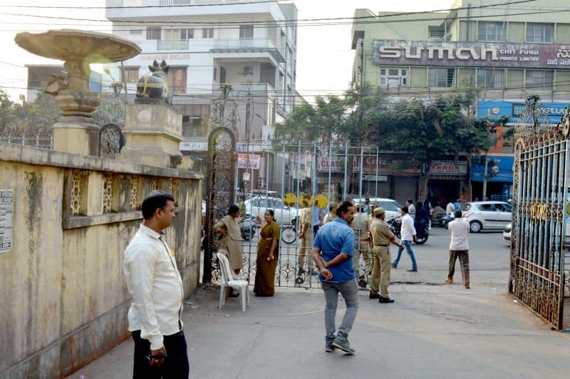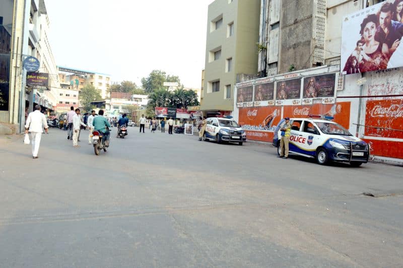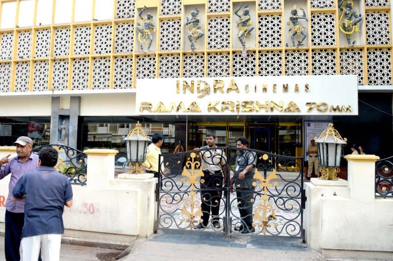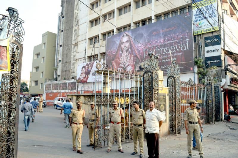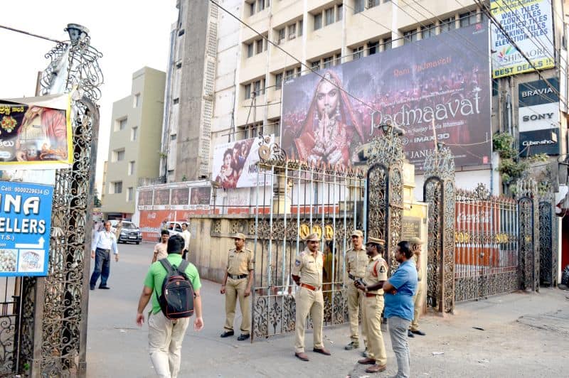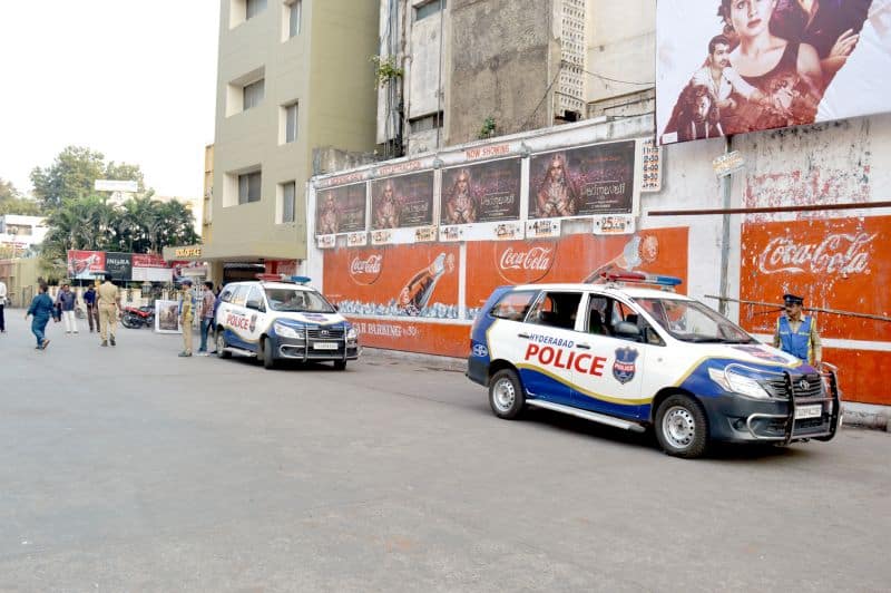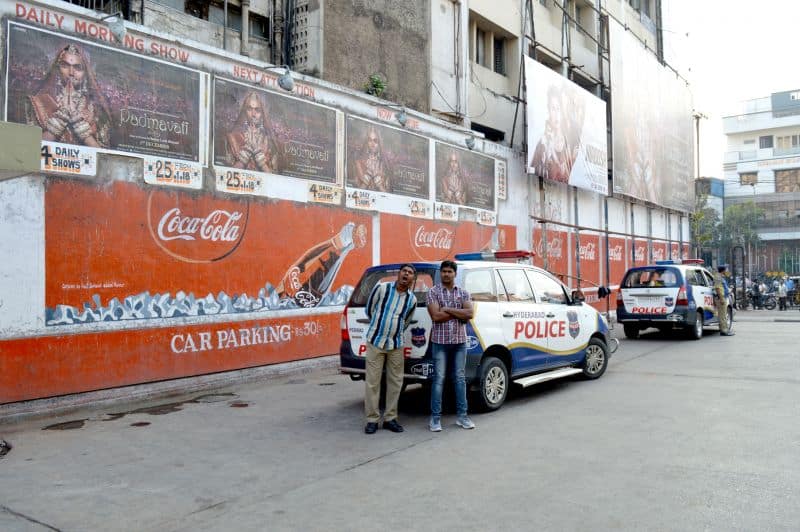 Security deployed at Ramakrishna Theatre in Hyderabad before the screening of controversial movie ‘Padmavat’ on Wednesday. (Pics. Murli)