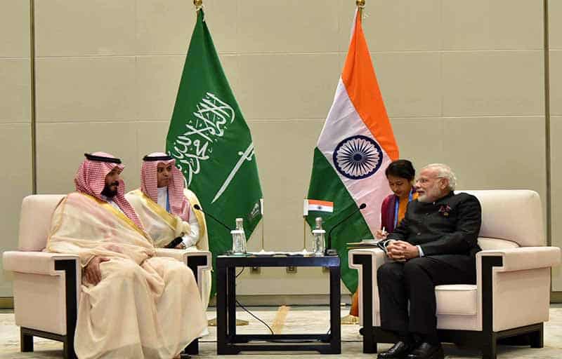 Prime Minister, Narendra Modi with the Deputy Crown Prince of Saudi Arabia, Mohammed bin Salman at the G20 Summit 2016, in Hangzhou, China on Sunday. UNI PHOTO