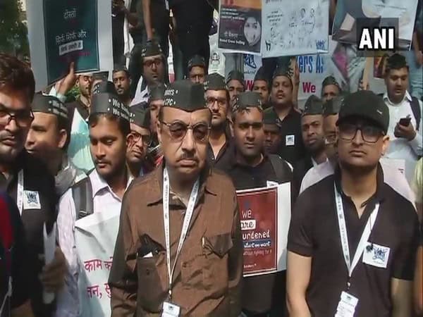 New Delhi: The members of United Forum of Bank Unions (UFBU) staged a protest in Delhi on Wednesday over the multi-thousand-crore scam unearthed in Punjab National Bank (PNB).