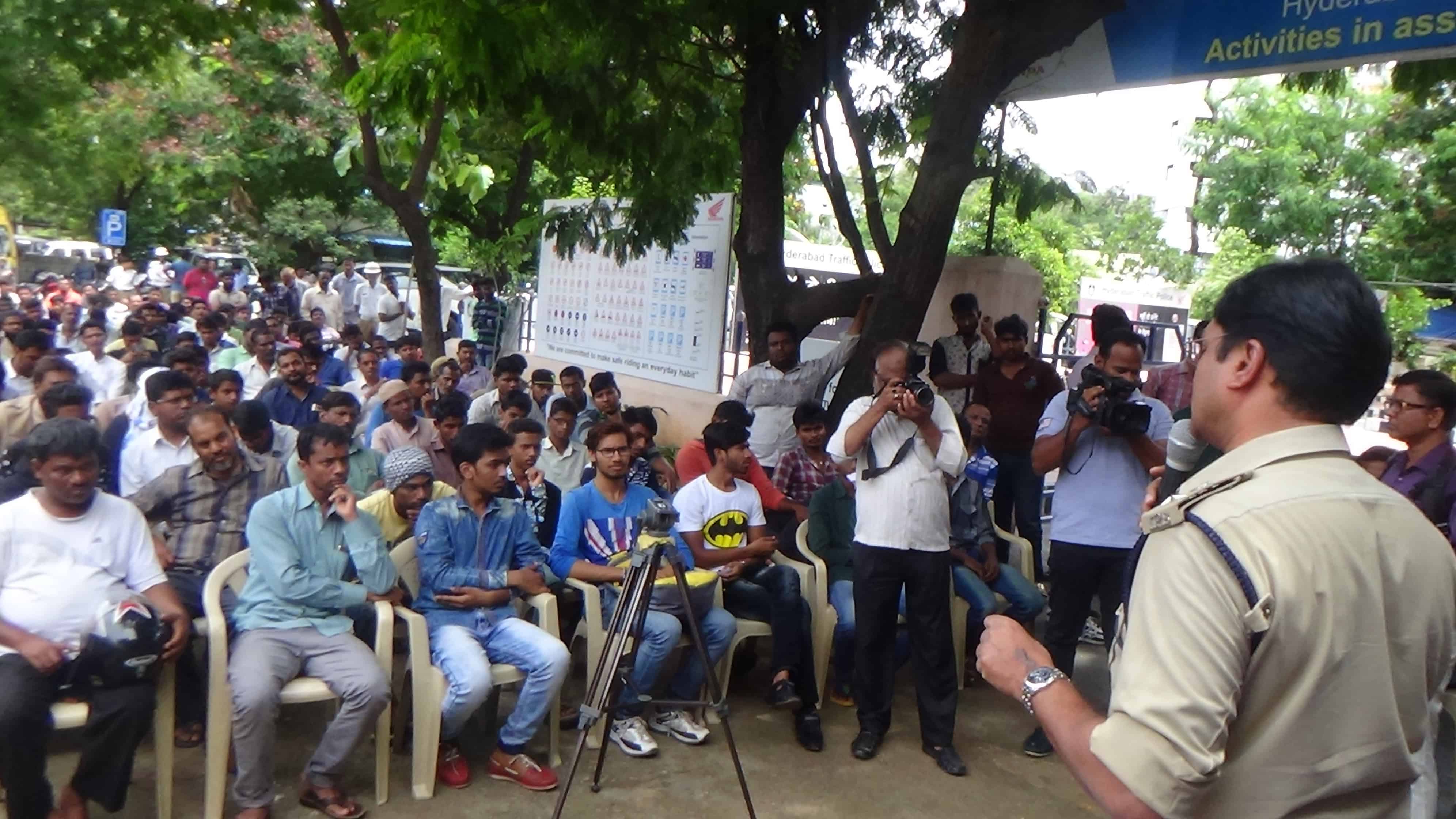 Police officials organised counselling session for minor bike riders and their parents. DCP Traffic Mr. A. Ranganath, ACP Jaipal and ACP South Zone Badreshwar and other took part at Gosha Mahal Traffic Station in Hyderabad on Saturday. (Pic. Faheem)