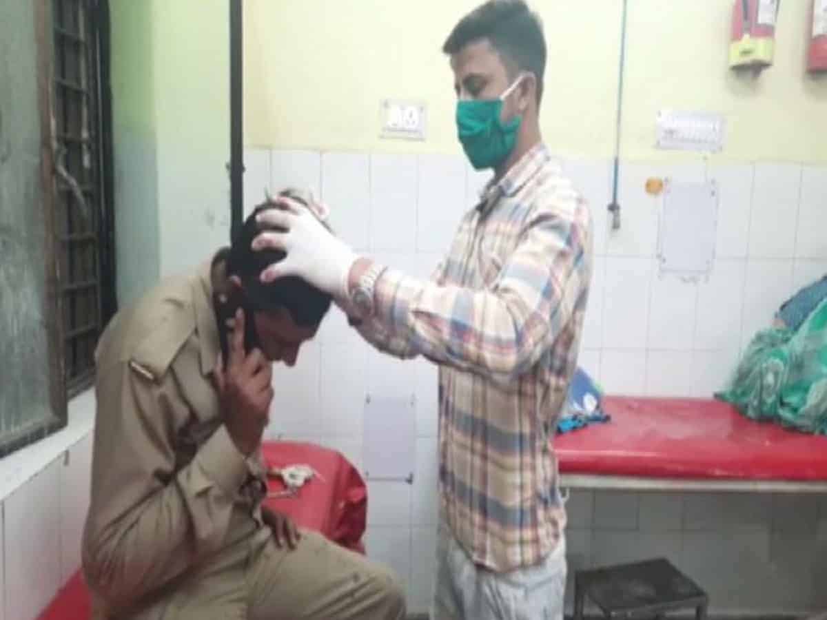 They started pelting stones at the police team and attacked them with rods and sticks in which the police personnel was injured.