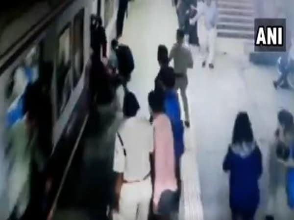 A video obtained by ANI shows that a woman fell down from a running train and while she was being dragged along the train, a passenger and an RPF personnel are seen rushing to her assistance.