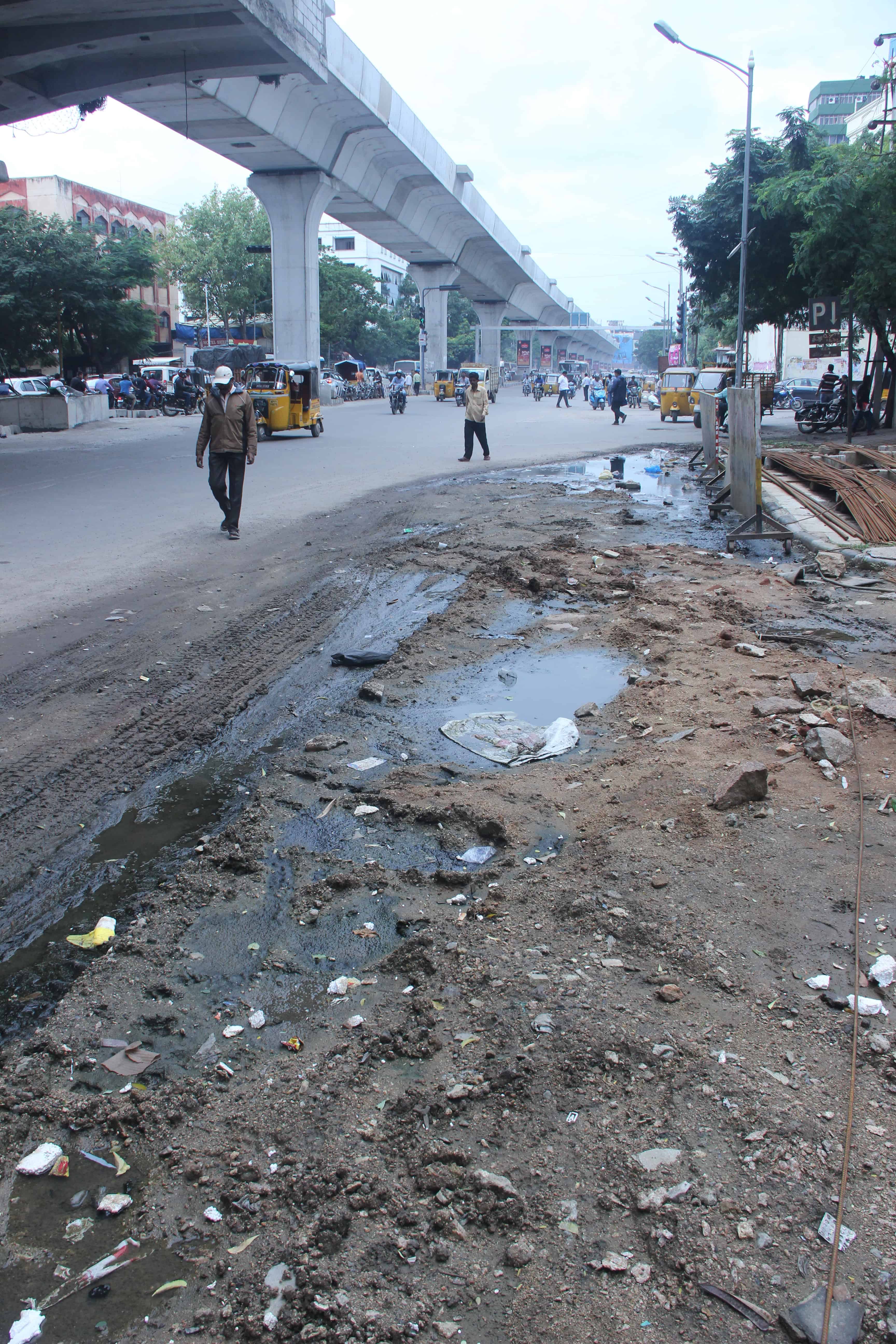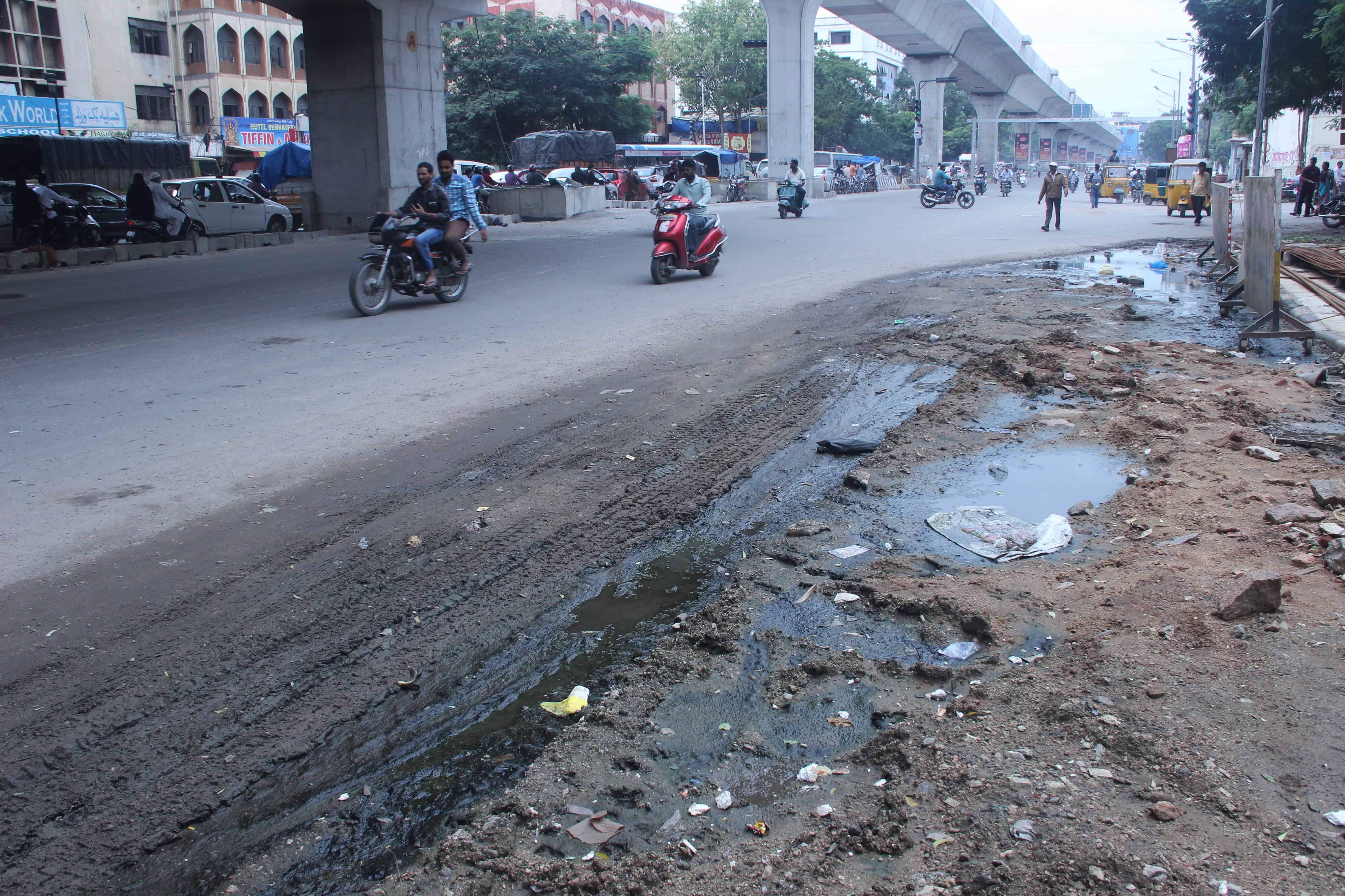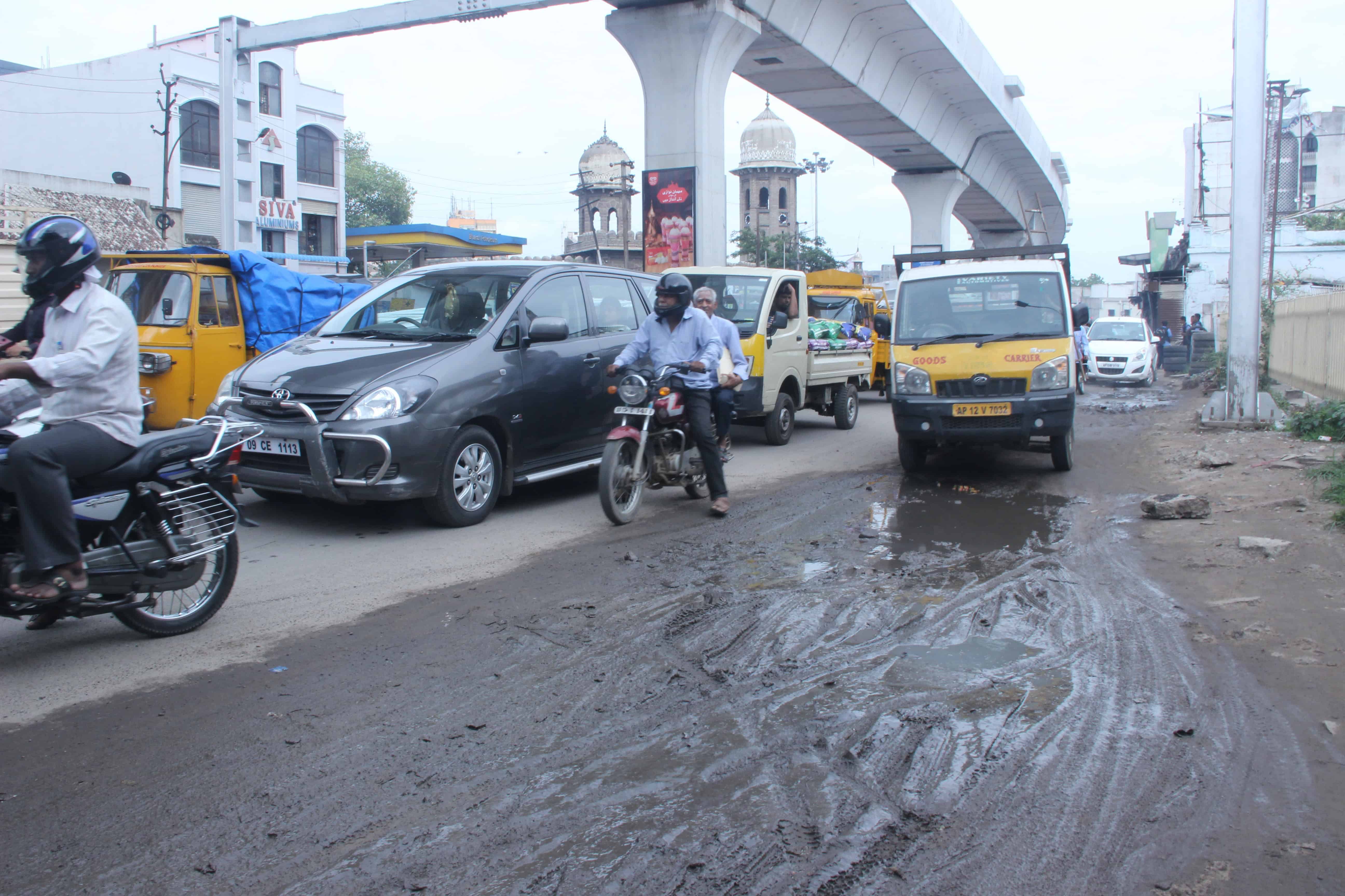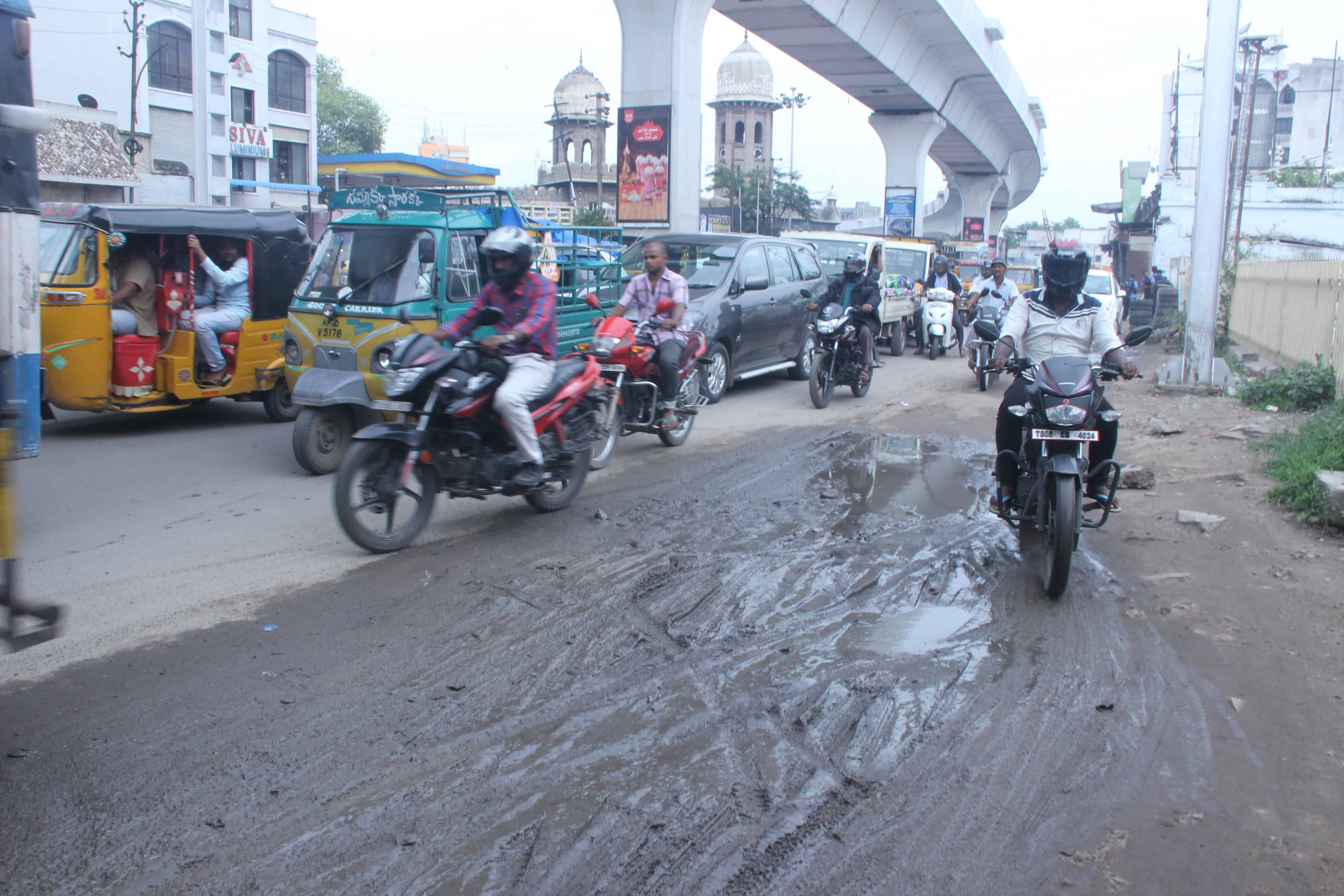 The roads at Chikadpally, Nampally and M J Market are hardly usable for traffic as the rain water has almost damged the roads which need immediate repairing.Photo:Laeeq