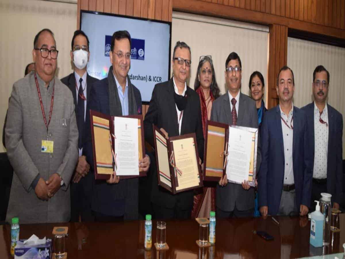 The MoU was signed between Director General Doordarshan, Mayank Kumar Agrawal and Director General ICCR Dinesh K. Patnaik in the presence of Chief Executive Officer (CEO) Prasar Bharati Shashi Shekhar Vempati and other senior officers from Prasar Bharati and Indian Council for Cultural Relations.