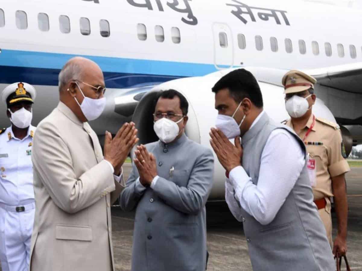 Goa: President Ram Nath Kovind was received by Goa Chief Minister Dr Pramod Sawant and Governor P S Sreedharan Pillai on his arrival here on Sunday.